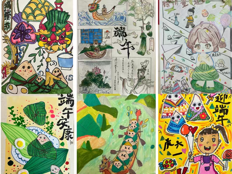 本次活動將傳統節日文化與兒童藝術創作相結合,吸引了許多職工子女熱情參與?;顒蝇F場以端午元素與童趣表達為核心,孩子們用水彩筆、彩鉛等繪畫材料,將端午的龍舟、粽子、艾草等傳統符號與卡通形象、童話場景巧妙融合,用童真畫筆描繪出對雙節的獨特理解:有的把粽子畫成戴墨鏡的“搖滾明星”,舉著鼓槌在龍舟上開演唱會;有的賦予粽子“會飛的魔法”,想象的翅膀不僅帶著粽子飛上云端,還在彩虹之間跳起了舞;還有的將承載著快樂童年的紙飛機放飛天際,彩色氣球在空中飄搖,懷揣著孩子們的夢想一同飛向高空。